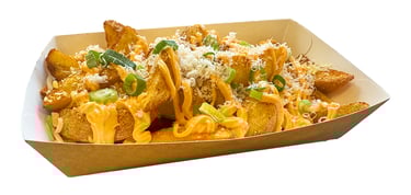 Friet met een dubbele laag geraspte oude kaas & truffelmayonaise