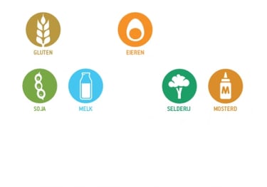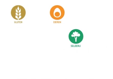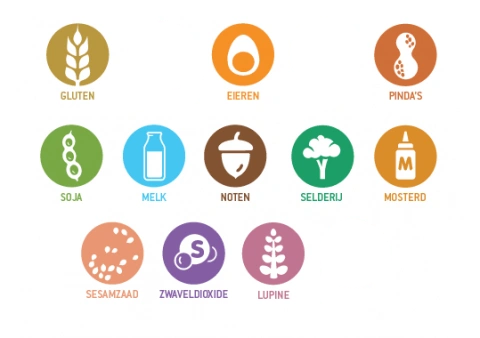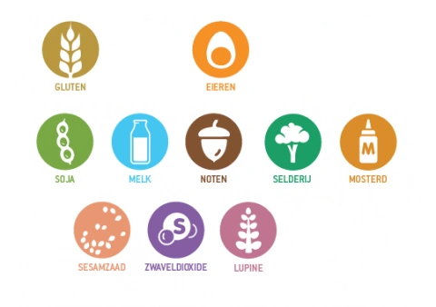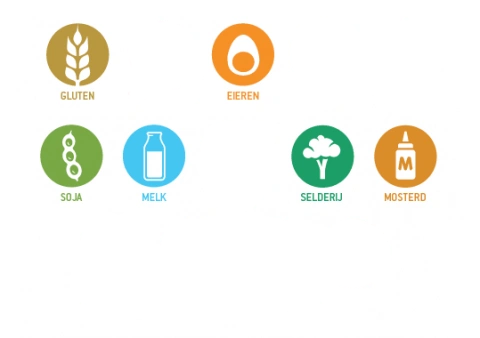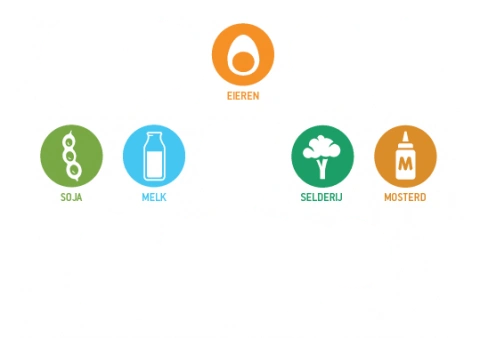Ei, gluten, melk, mosterd, selderij en soja