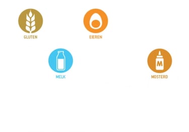 Ei, gluten, melk en mosterd